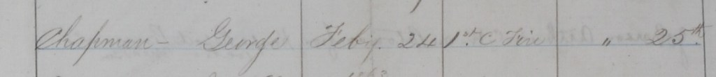 Linking records is a major aim of the Civil War Bluejackets Project. The muster allows us to find the record of George’s enlistment in New York on 24 February 1864. This tells us he was 40-years-old, a Machinist, and was born in England. He had a scar under his right eye and on his forehead.