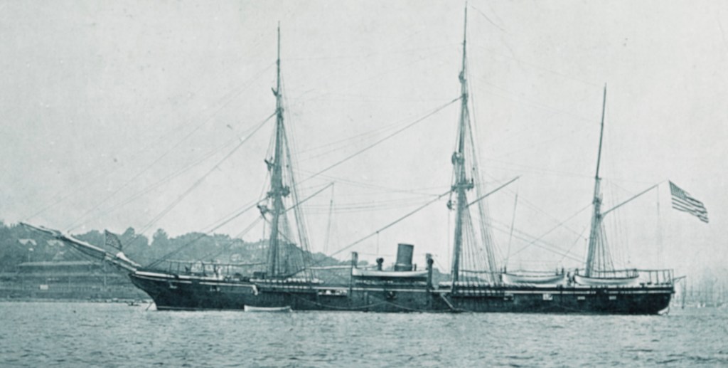 John Cogan is recorded on the Juniata‘s muster roll as a 27-year-old English-born sailor, who had been a steam-fitter at enlistment. But he had seen prior naval service, both as a boy in the 1850s and later under an assumed name earlier in the war. He explained this in later years: