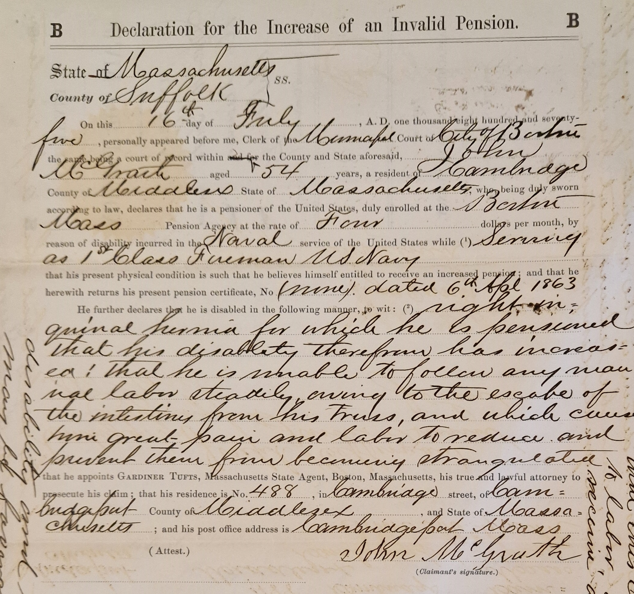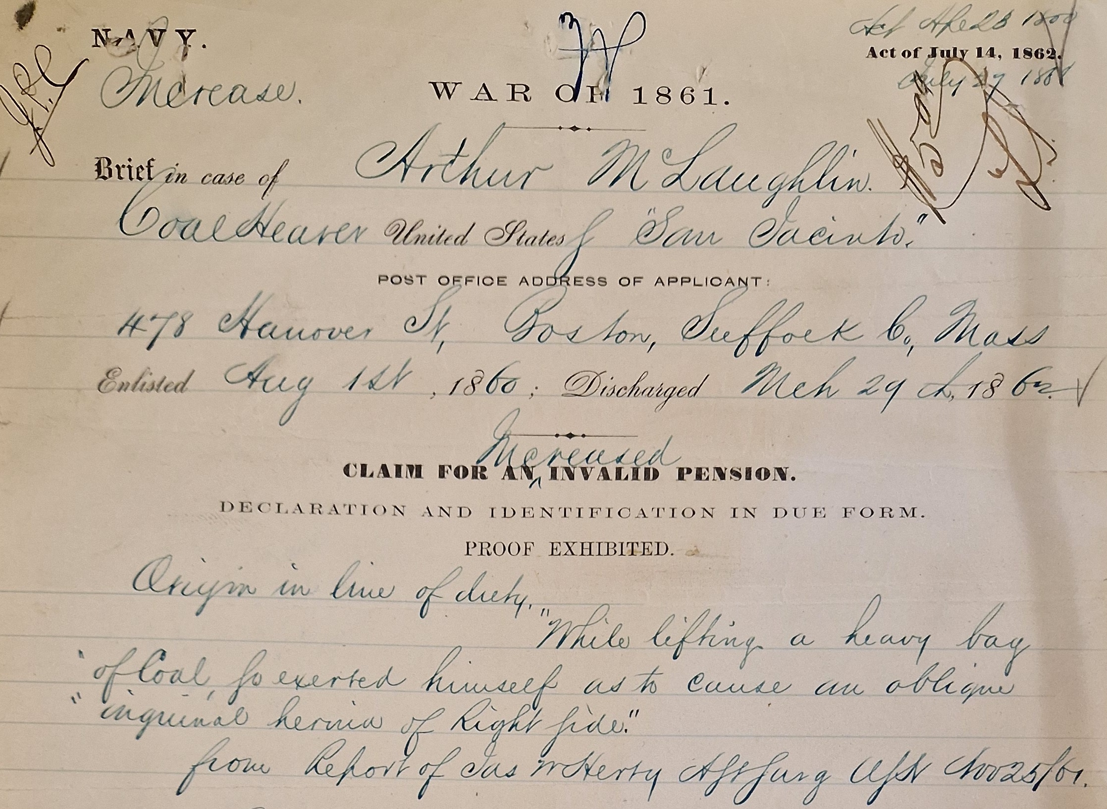 Anyone who works with Civil War pensions—particularly those of naval veterans—will have encountered men who suffered from hernias. In their applications, they usually blame lifting heavy materials or being struck by an object (but for more on that, read on). Though easily treated today, hernias were extremely debilitating in the 19th century, causing both severe pain and threatening laboring men’s ability to earn a living. In this special post, Civil War Bluejacket’s Zooniverse Moderator (and retired physician) Robert Croke explores just what hernias were, and what they could mean for those who suffered from them.